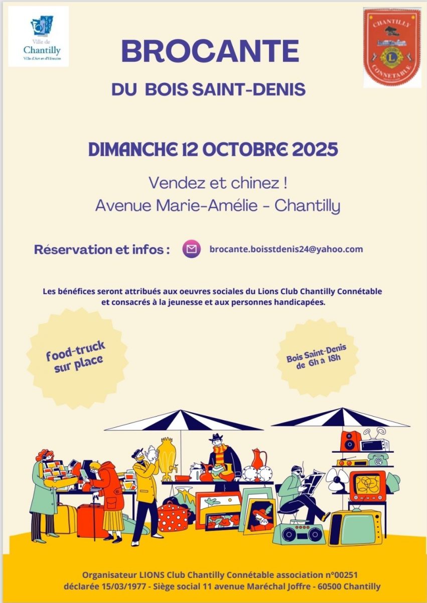 Brocante organisée au profit des Œuvres sociales du Lions Club Chantilly Connétable