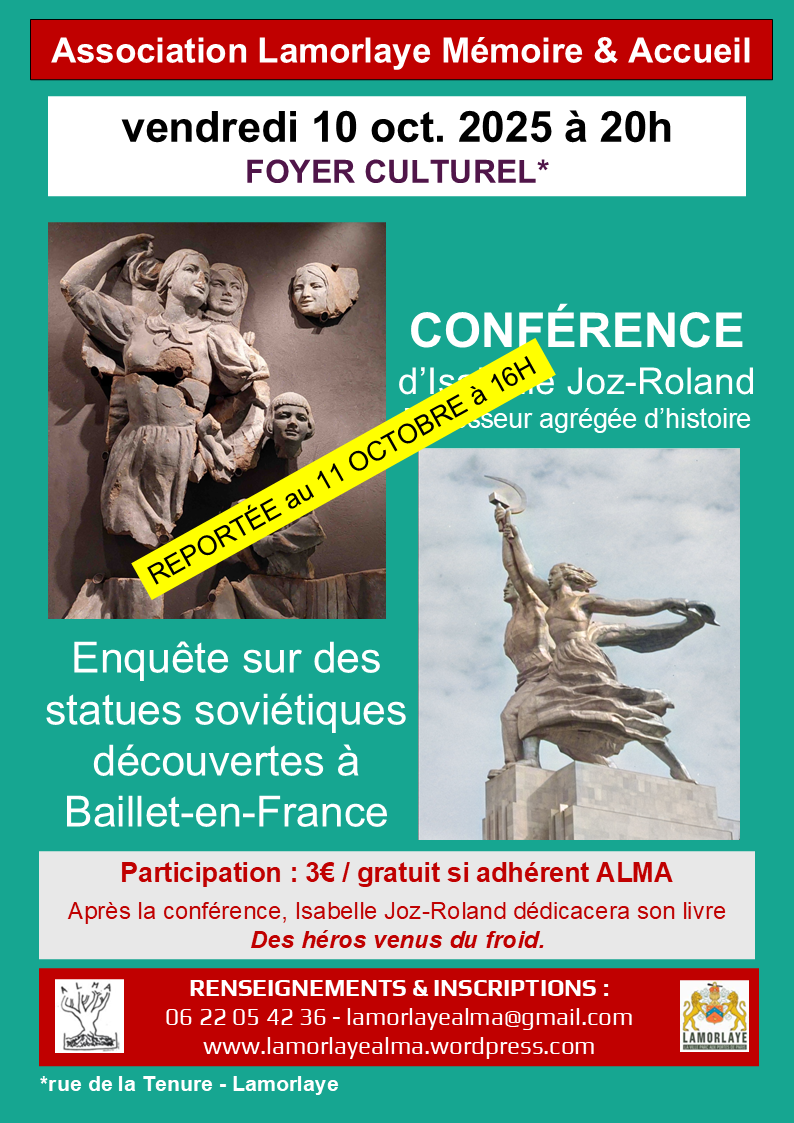 L'ALMA propose une conférence d'Isabelle Joz-Roland, historienne et romancière qui a déjà publié 7 livres. Elle part toujours d'un sujet local pour construire un roman qui respecte la vérité historique. Ici, l'Histoire, c'est le Front populaire, l'exposition universelle de 1937 à Paris, la Seconde Guerre mondiale, ... et, en 2004, une surprenante découverte par l'archéologue François Gentili.