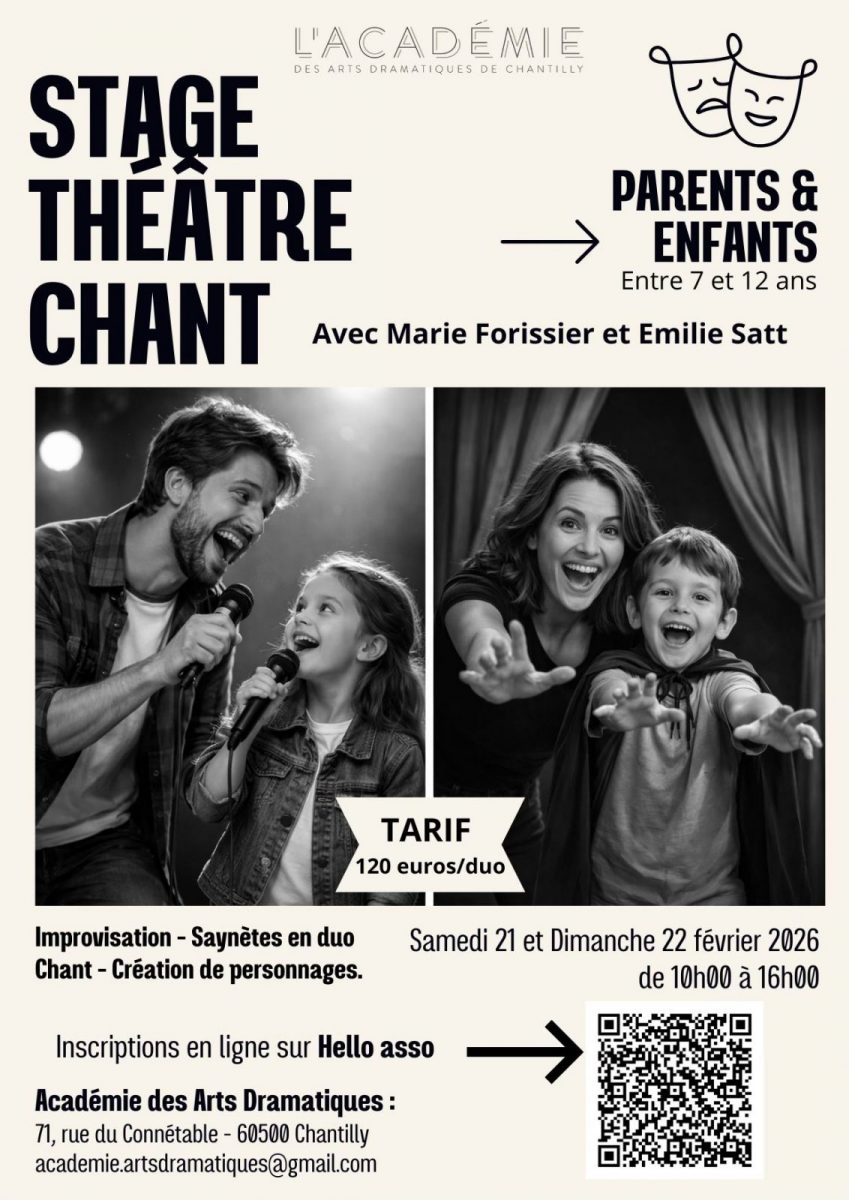 Venez pratiquer le Théâtre et le Chant en duo parents / enfants le temps d'un week-end.