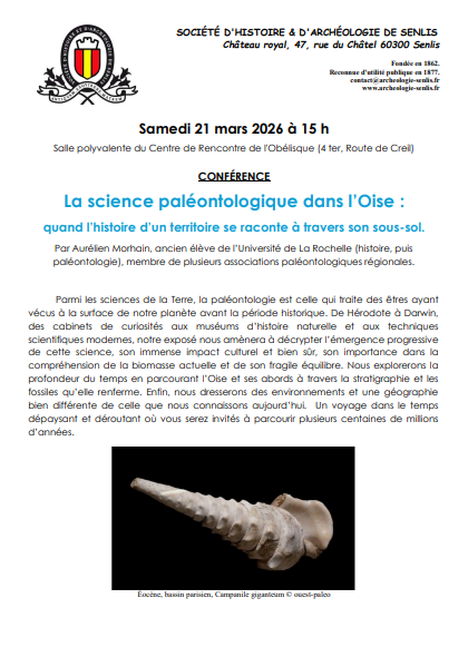La science paléontologique dans l’Oise : quand l’histoire d’un territoire se raconte à travers son sous-sol. Par Aurélien Morhain, ancien élève de l’Université de La Rochelle (histoire, puis paléontologie), membre de plusieurs associations paléontologiques régionales.