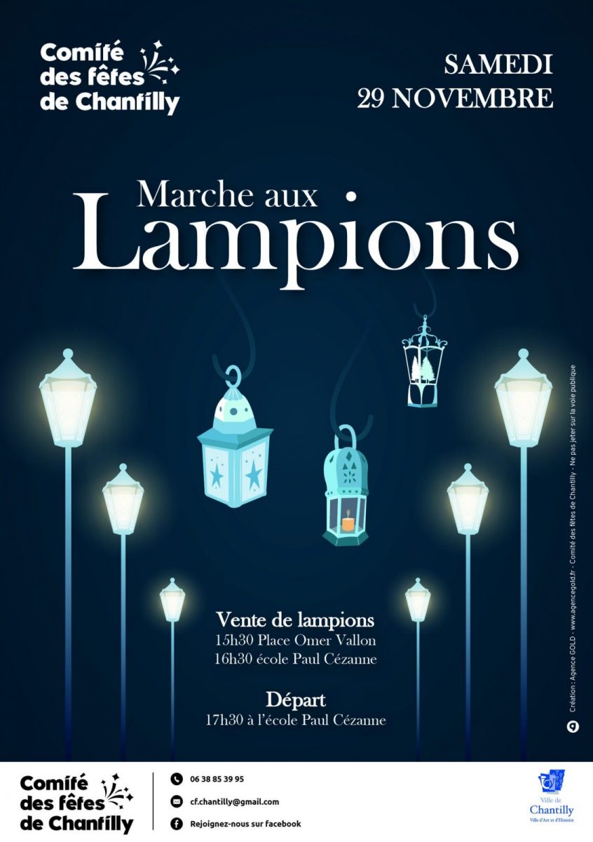 Chaque année, la ville de Chantilly se transforme en un véritable conte de fées grâce aux illuminations dans la ville et surtout à celle du sapin! Pour préparer l'entrée dans cette période festive participez à la marche aux lampions du Comité des Fêtes. Elle démarrera à l'école Paul Cézanne à 17h30 et se terminera place Omer Vallon par l'illumination du sapin autour d'une boisson chaude et réconfortante.
