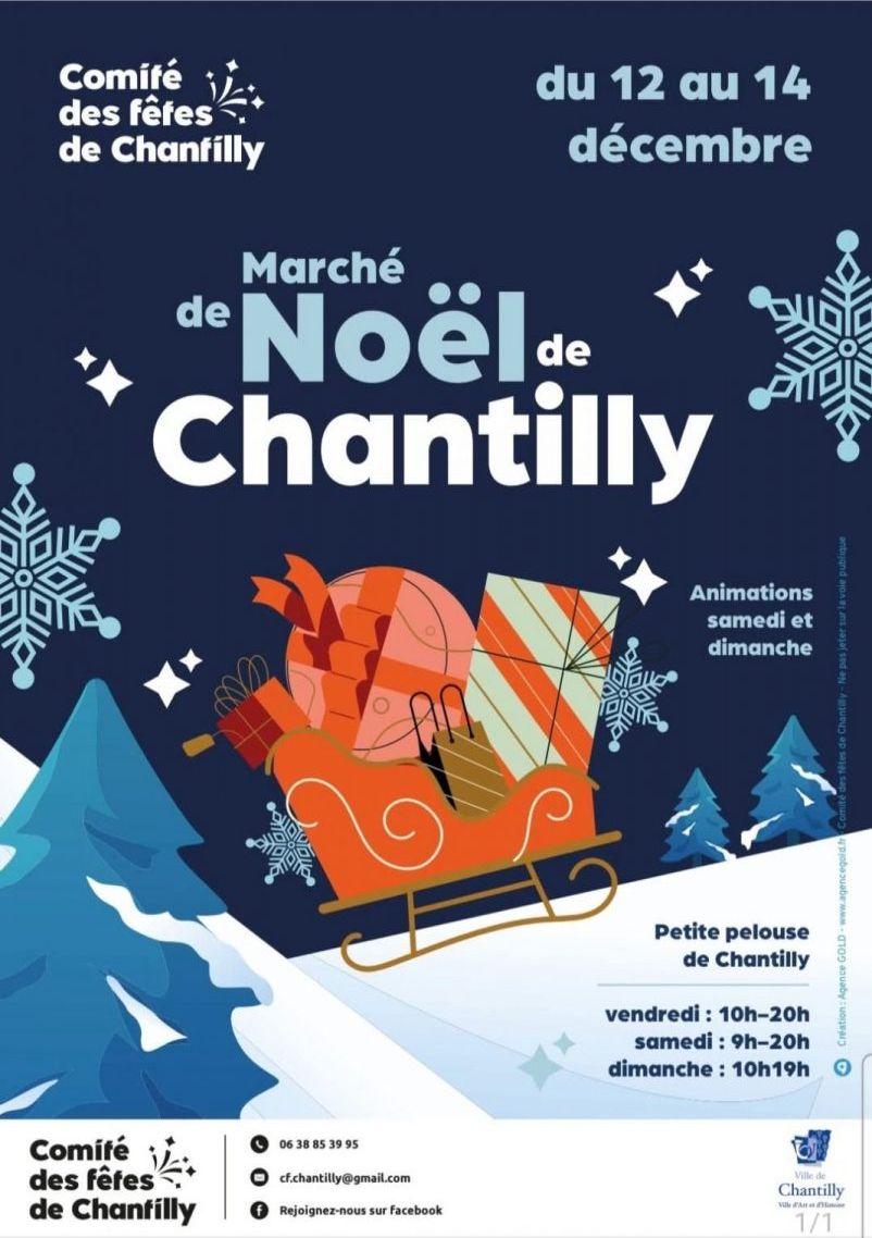 Du 12 au 14 décembre : Marché de Noël de Chantilly – Vendredi : 10h-20h, samedi : 09h-20h, dimanche : 10h-19h