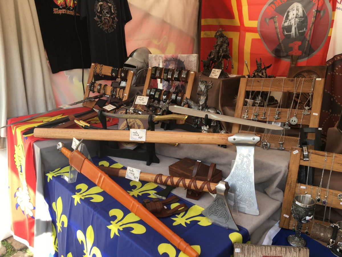 Atelier de forgerons, fabrications de vitraux, démonstrations d’armes de guerre, potiers, écrivain, conteurs itinérants, calligraphes, travail de la laine, verrerie historique, couteaux, pierres, bijoux, savonnerie, articles pour enfants.
