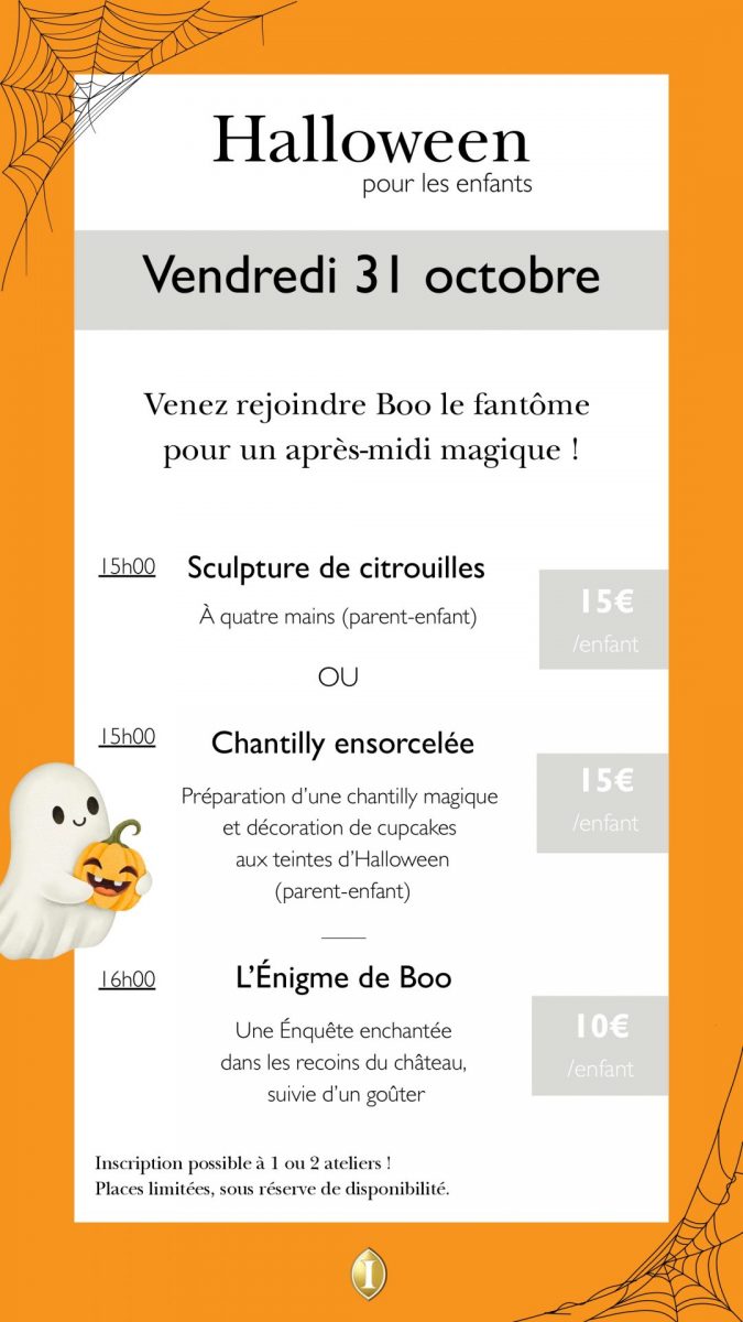 -16h : L’Énigme de Boo : Une enquête enchantée dans les recoins du château, suivie d’un goûter.