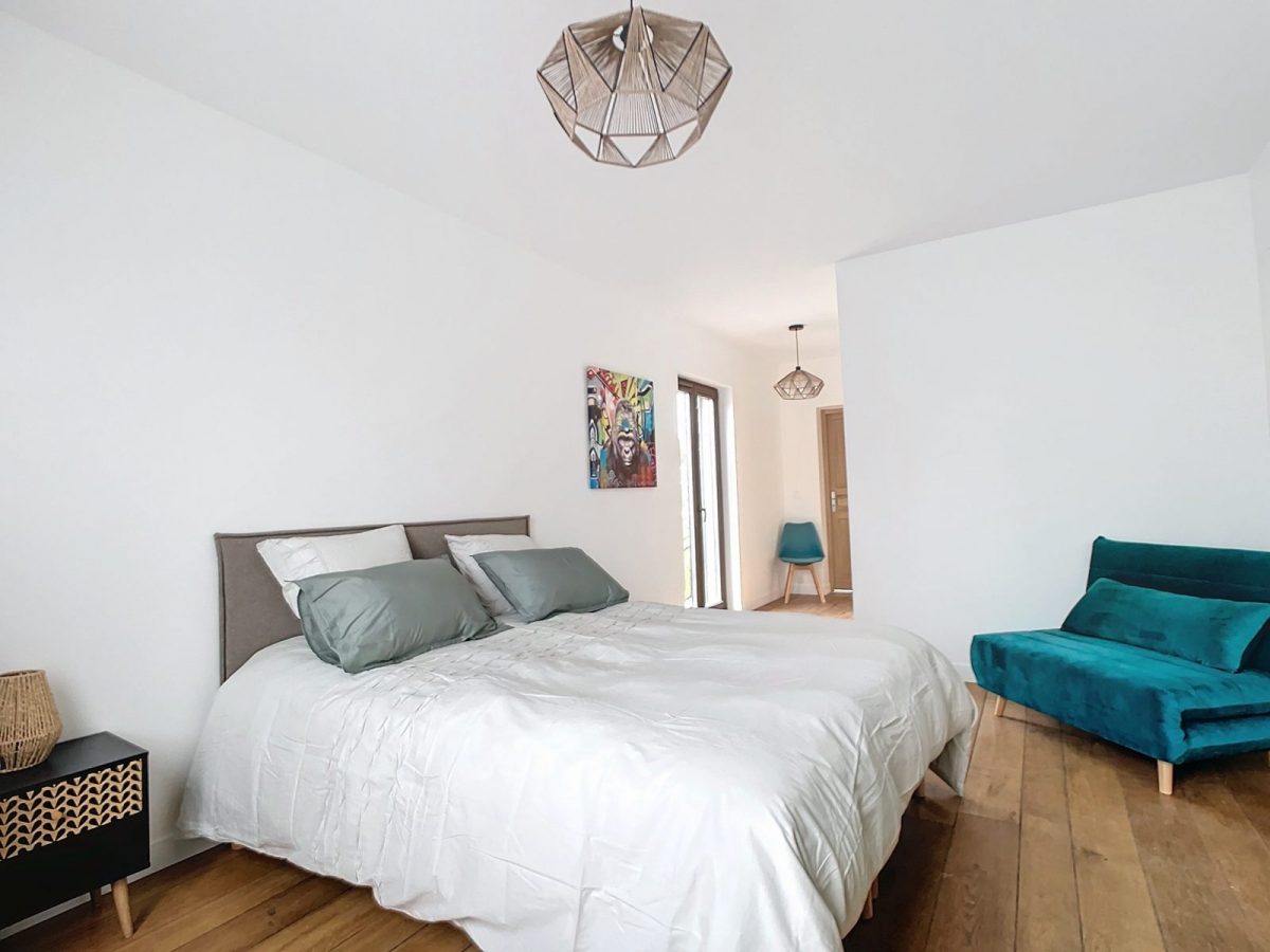 À l'étage : 1 suite avec lit double (160x200 cm), télévision et salle d'eau privative, 1 chambre pour 2 personnes (2 lits 90x190cm), et 1 chambre 4 couchages (un lit superposé et 2 lits simples) - Salle d'eau indépendante avec douche et WC.