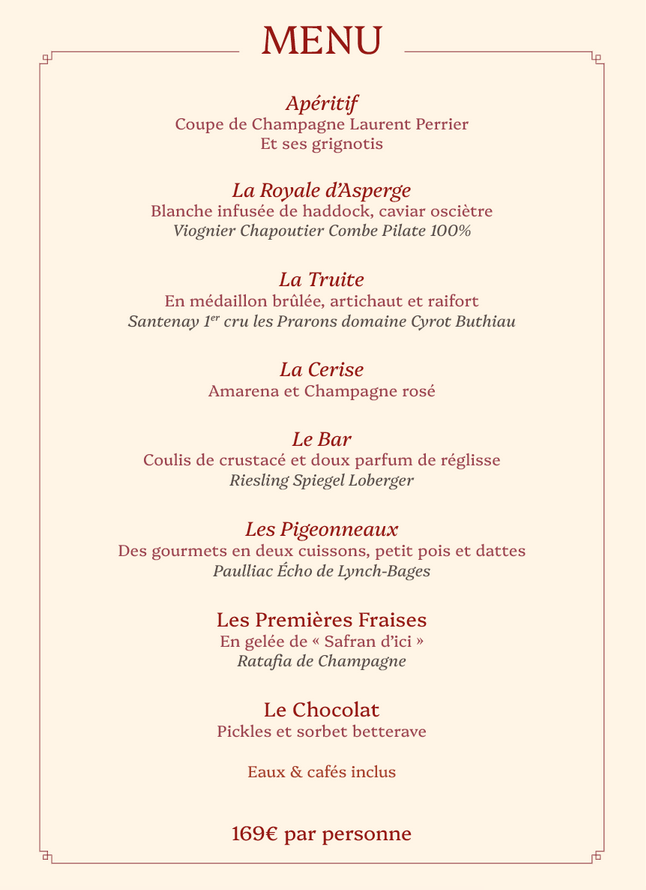 À travers un menu unique en accords mets et vins, imaginé spécialement pour cette occasion, les deux chefs uniront leur créativité et leur savoir-faire pour vous offrir une expérience culinaire raffinée et inoubliable.