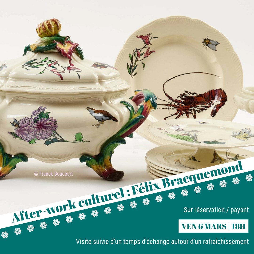 Le vendredi 6 mars à 18h, plongez dans l'univers de Félix Bracquemond, peintre, céramiste, graveur et décorateur du service Rousseau des faïenceries de Creil et Montereau !