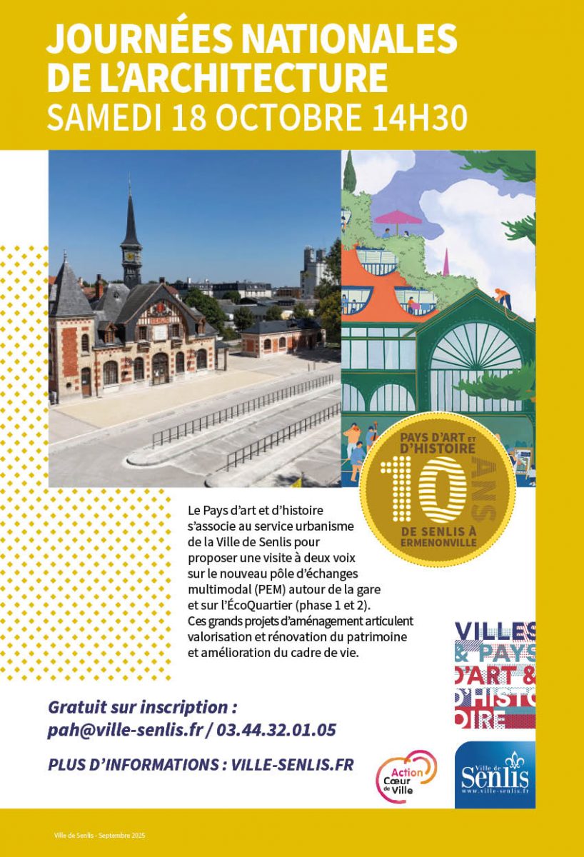 Événement national porté par le Ministère de la culture, les Journées nationales de l’architecture proposent de dévoiler les richesses de l’architecture, notamment contemporaine. À cette occasion, le Pays d’art et d’histoire s’associe au service urbanisme de la Ville de Senlis pour proposer une visite à plusieurs voix sur le nouveau pôle d’échanges multimodal (PEM) autour de la gare et sur l’EcoQuartier (phases 1 et 2).