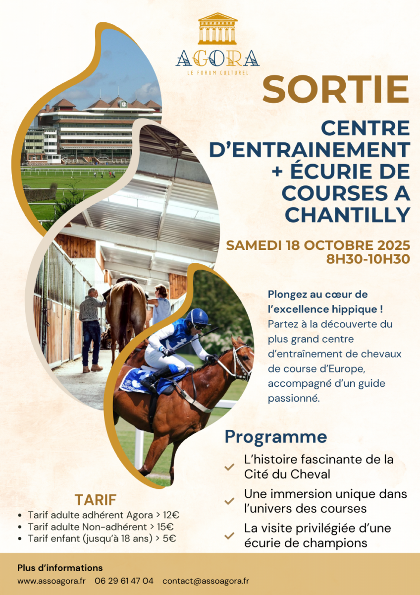 Programme : histoire fascinante de la cité du cheval, immersion unique dans l'univers des courses, visite privilégiée d'une écurie de champions.