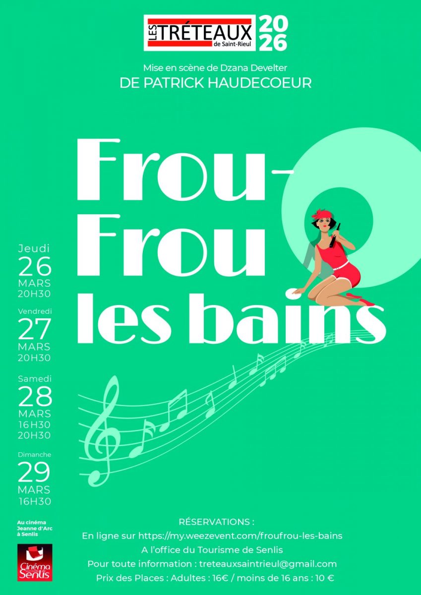 Les Tréteaux de Saint Rieul vous présentent "Frou Frou les bains "de Patrick Haudecoeur mise en scène par Dzana DEVELTER , au cinéma Jeanne d'Arc du 26 au 29 mars 2026.